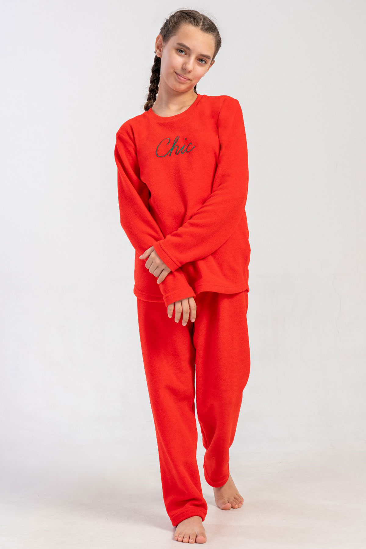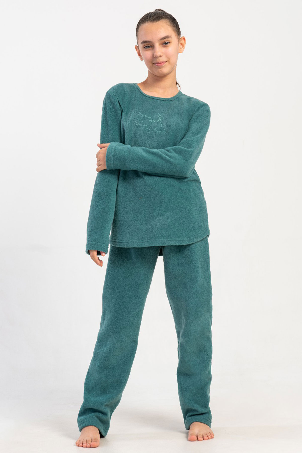 KIZ COCUK POLAR O YAKA UZUN KOL ETEGI OVAL PIJAMA TAKIM(7-8/13-14)