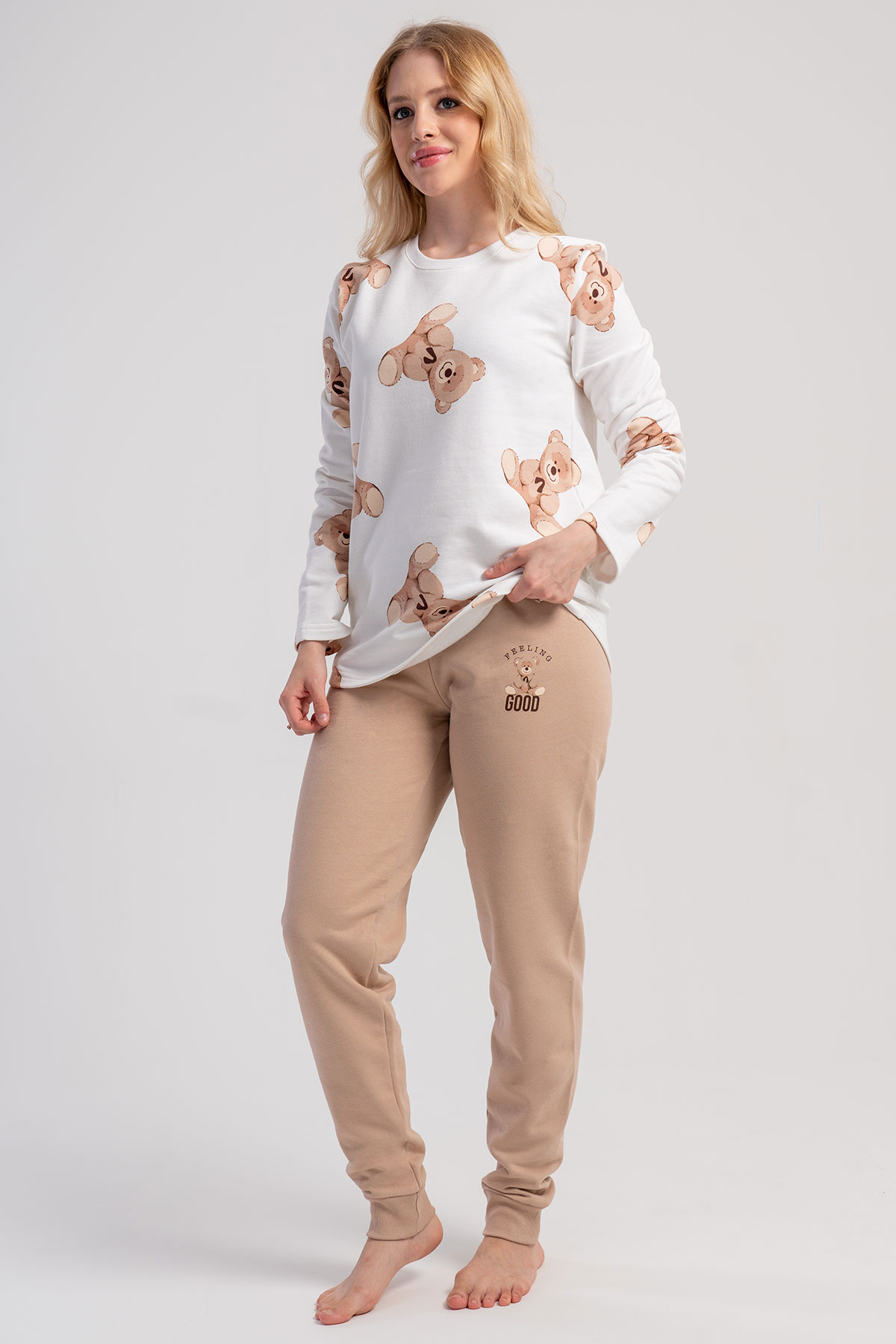 KADIN P.SUPREM O YAKA UZUN KOL ETEGI OVAL PIJAMA TAKIM