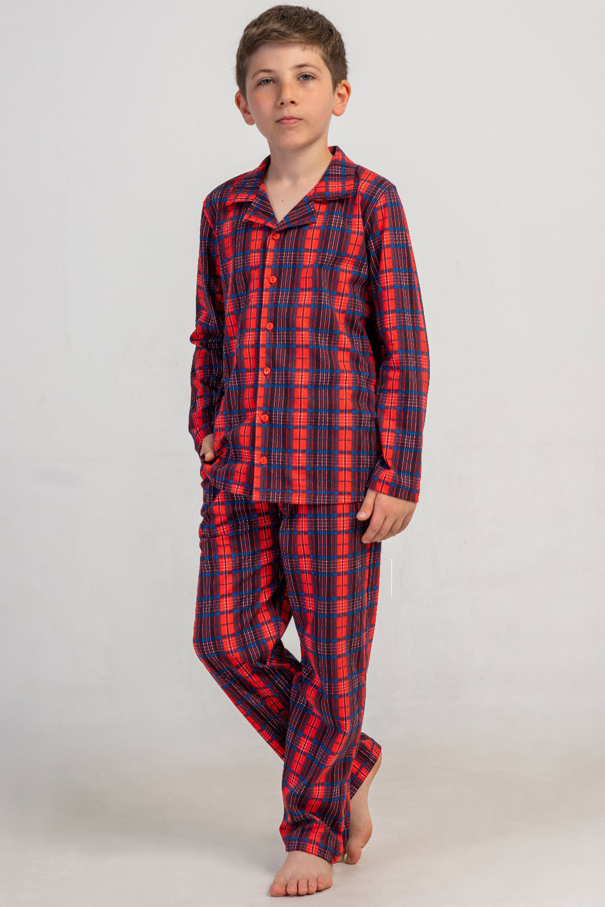 ERKEK COCUK P.SUPREM GOMLEK YAKA TAMAMI DUGMELI UZUN KOL CEPLI PIJAMA TAKIM(7-8/15-16)